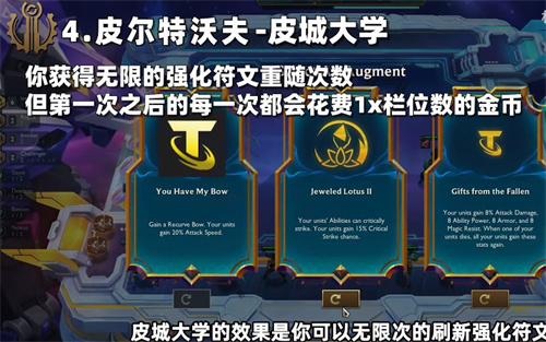皮城大学:你可以无限次的刷新强化符文,但是除了第一次免费,后续刷新都会花费1乘以栏位的金币数。