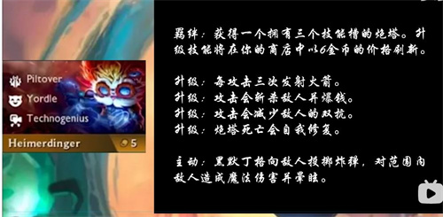 羁绊:获得一个拥有三个技能槽的炮塔。升级技能将在你的商店中以6金币的价格刷新。