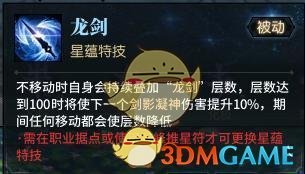 被动技能。达到100层可以增伤10%。每秒大概可以7层。14S左右的时间叠满。30号更新以后100层移动不掉层数。个人推荐龙剑。