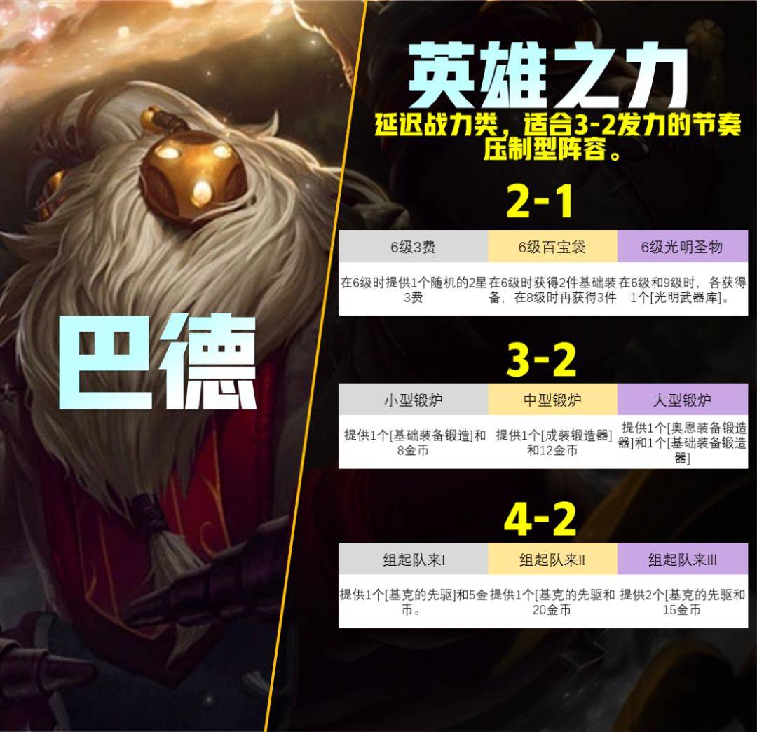 巴德也是典型的中期强化,非常适合3费的节奏压制型阵容。