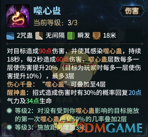 绮月殇,也就是大家常说的刨地。绮月殇这个技能直播间经常会有人问绮月殇是不是一定要三咒蛊打。首先我们要明确,三点咒蛊打伤害差不多刚好是一点咒蛊的三倍,两点咒蛊也是类似比例。如果你急于续状态,比如说蛊毒快到时间了,那这个时候几点咒蛊就无所谓了。其它的情况下,我们肯定是要尽量三咒蛊打的。原因很简单,绮月殇这个刨地技能动作前后摇这么大,你六点咒蛊放两下和放三下占用的时间能一样吗?我们三咒蛊打,节省的时间光普攻就可以多打不少伤害了。