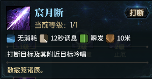 宸月断,12秒CD+10米的施放距离,全职业最强的打断技能。