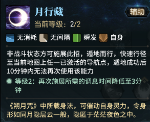 月行藏,咒隐的职业特色技能。可以在非跨图的情况下对导航点进行传送,跑图神技。作为唯一一个可以对点传送的职业,我大咒隐允许你们先跑40秒我再动,哈哈。