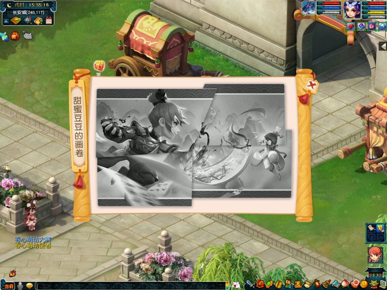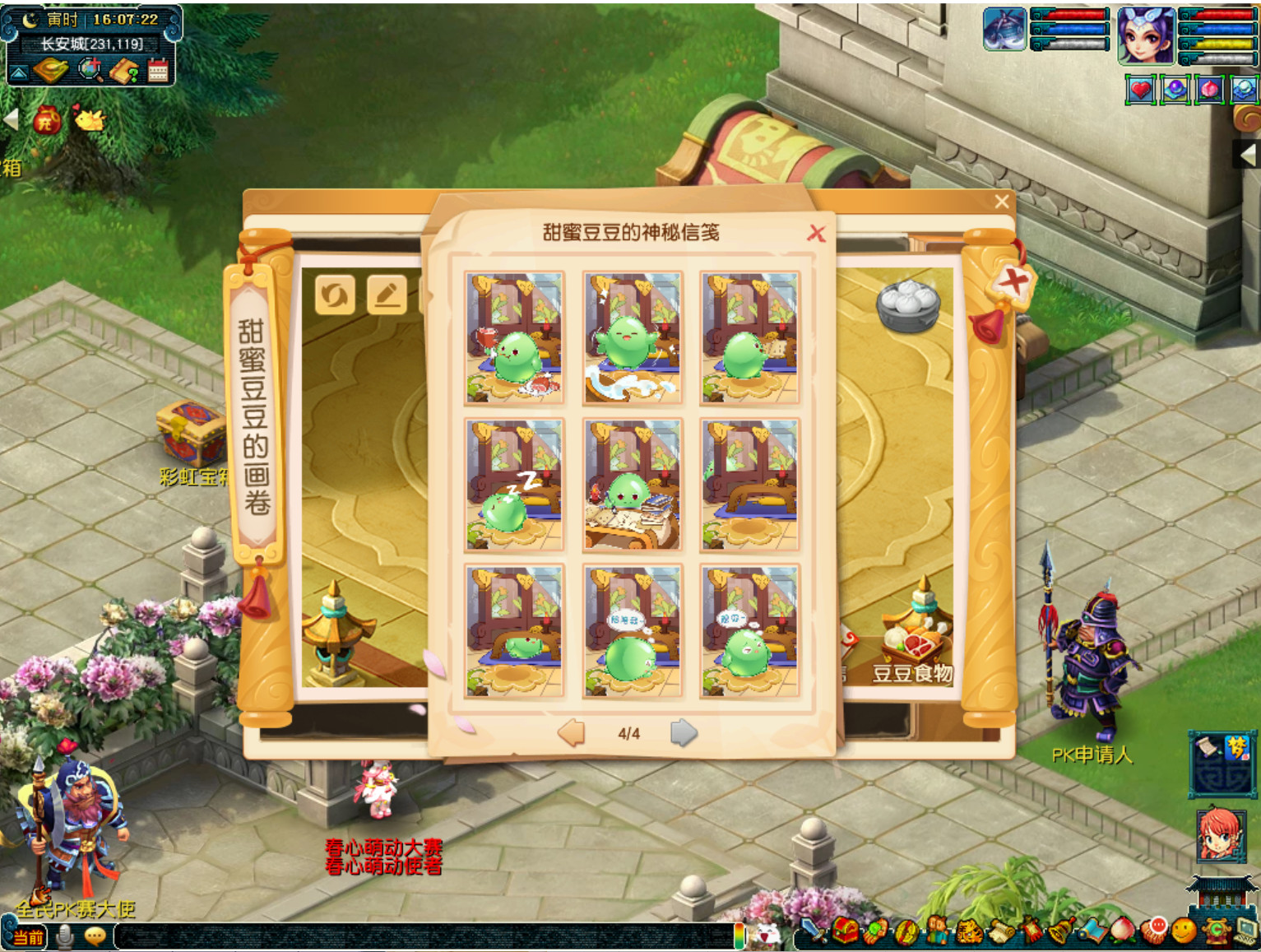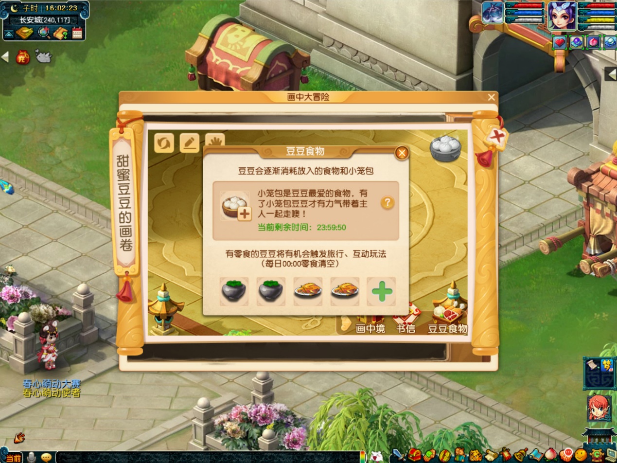 甜蜜豆豆会在整个暑假期间陪着少侠,即使少侠不在线,只要准备了充足的食物,豆豆就会在世界中闲逛为各位带来豆豆的信笺,打开“豆豆的探险画卷”,点击“豆豆画卷”,即可查看。