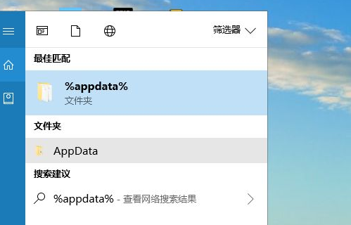 9.用Windows左下角的搜索功能,在输入%appdata%之后,选择并打开AppData文件夹 。