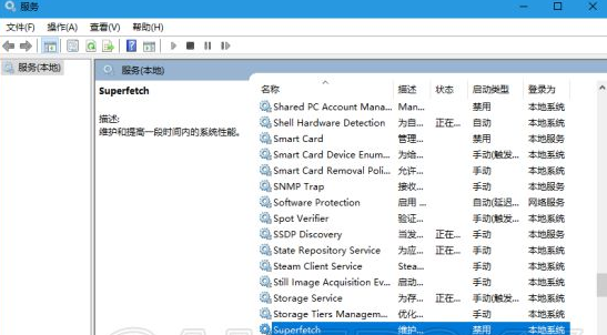 找到名称叫Superfetch的一项 ,然后右键属性,在启动类型里面选择禁用。
