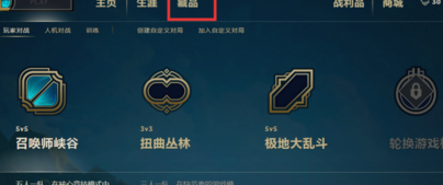 1.打开英雄联盟的主界面,会看到"藏品''点击进入。