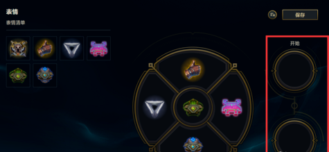 3.表情轮盘右边分别有开始和胜利,那是我们开局和获胜自动触发的表情,我们可以将你想要设置的表情放在里面,在游戏开始和结束的时候就会自动释放了。
