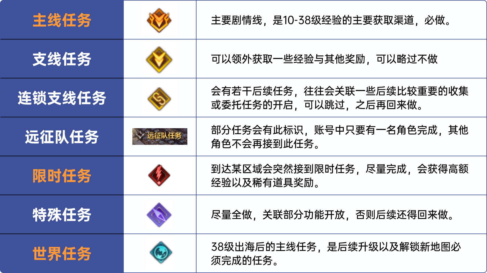 练级期根据自己的目标选择升级方式,想要尽快到达50级则只需要完成主线任务即可,想要慢慢体验游戏乐趣的可以所有任务全做,大部分支线任务都可以在做主线时候顺路完成,也不会浪费太多时间。
