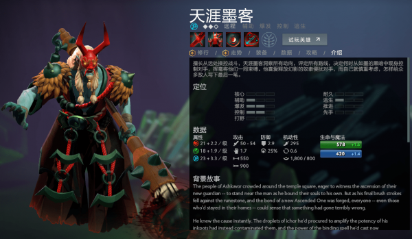 dota2的天涯墨客是一位新加入的智力英雄,他的官方定为是爆发与辅助,很多人还不知道他的加点玩法,下面一起来看看吧。