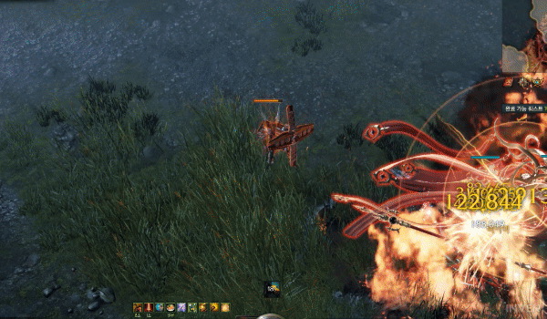 BOSS顺时针挥舞长枪,被击中的外围玩家将被击退,近距离的玩家将会被击飞。
