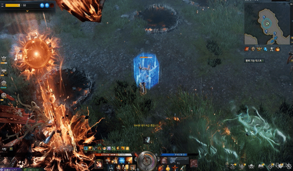 BOSS产生小型爆炸并发出蓝色光环,如果在这种状态下20秒内没有将BOSS瘫痪,则BOSS会起身施放附带【即死】伤害的火流星;