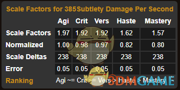 6.Subtlety的属性权值、饰品、武器附魔的选择。