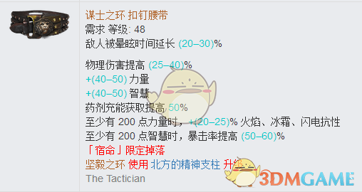 另外一个预言版本也是可以的,甚至没有升级过的乞丐版本也是可选的,我选这条腰带的原因是补充力量以及不错的相性。