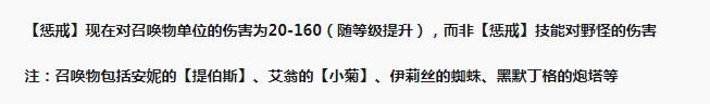 【惩戒】现在对召唤物单位的伤害为20-160(随等级提升),而非【惩戒】技能对野怪的伤害