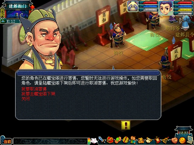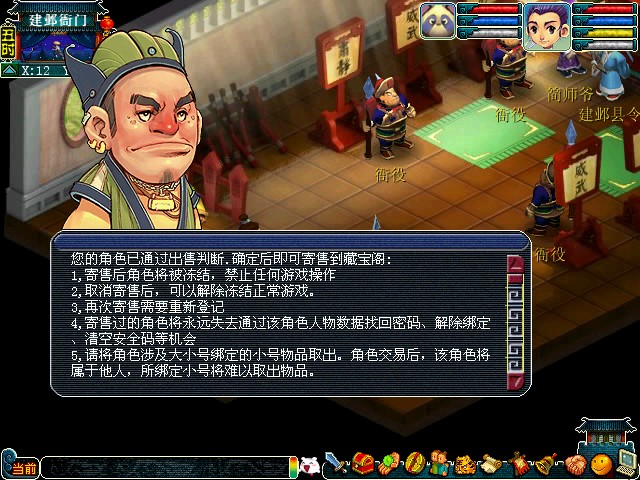 4) 携带金钱未超上限,没有系统负债,没有在藏宝阁有寄售物品或未取出的物品;
