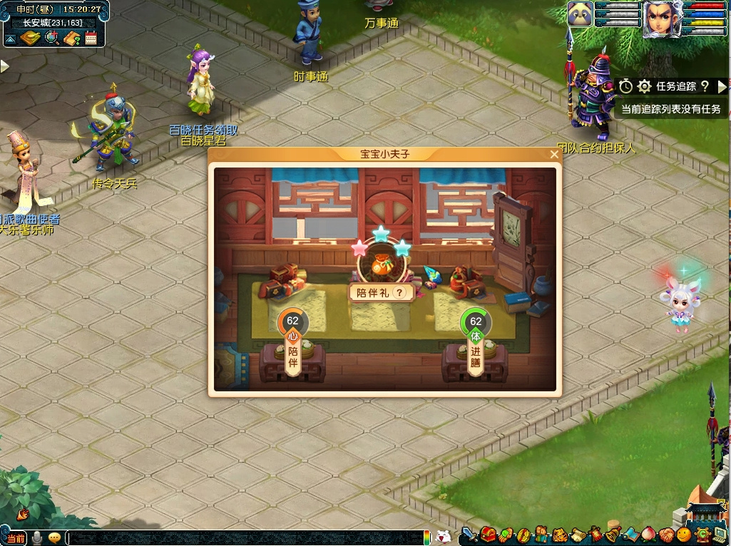 玩家可前往长安城(224,122)太学司业处选择“我要参加'蒙学夫子'”,认领一名小学童,显示在客户端右侧。
