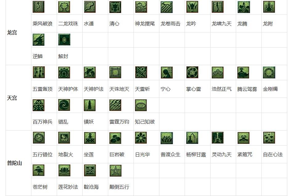 →(暗绿色)门派法术类 |