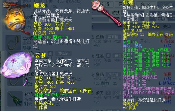 首先,是武器。虽然九黎城这个门派属于奇遇门派,每个角色都可以加入。但是,只有影精灵这个角色才能使用双斧。而不论什么武器,都可以通过食铁兽转换成巨斧。所以,只要选择高属性的武器就可以,不用在意武器的外观。当然了,最好是110级拥有简易特效的灯笼、伞……,这类的武器。因为相对来说,这些武器的价格更低一些。而且跟100级的武器相比,伤害、命中也更高。如果再有个特效永不磨损的话,自然更好。
