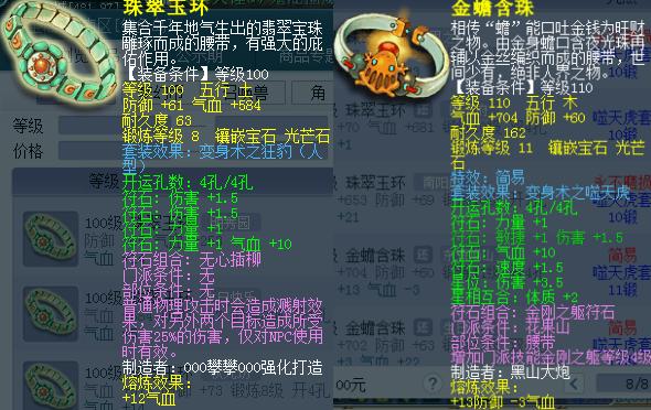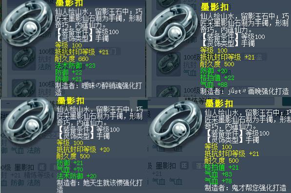手镯、佩饰的选择,以提升生存能力为主。当然了,手镯的主属性一定要是抵抗封印。除此以外,属性的数值最好是高于强化打造的基础数值。