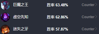 分析:己方阵容无法处理赏金和发条,并且这两位敌方英雄都没有位移,那么雷恩加尔将是一个非常好的选取对象,无论是单带还是后排切入都无法制止雷恩加尔。