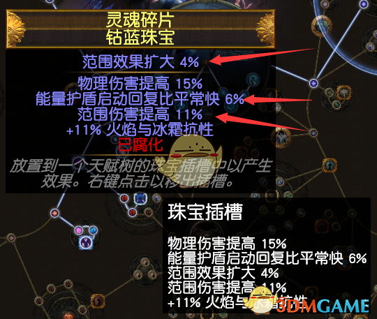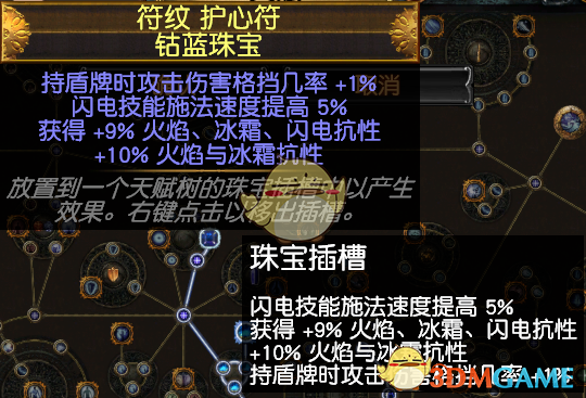 注:该珠宝可有可无!仅属于锦上添花! 该位置同样可以插潜能防护(传奇蓝珠宝!),同时将珠宝槽右上角血量与能量护盾点点上。