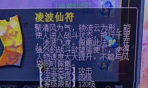 2.凌波仙符属于4级瑰宝,结果雷同风带,为增加快度,获得后不行生意业务,捉鬼等任务时有几率接到瑰宝任务,瑰宝任务有几率为凌波仙符,也可利用瑰宝任务书(300万左右)。