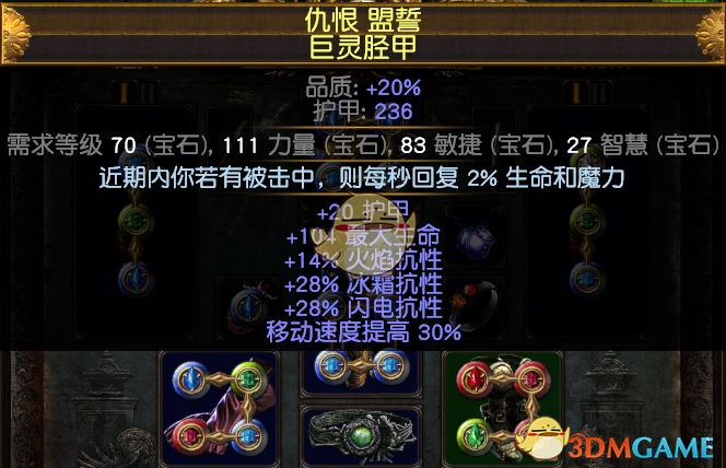 4.头,鞋,手,腰带:黄装即可,有生命,抗性。手上有施法速度,电伤最佳,手的底子推荐用丝绸手套。暗金推荐:电伤的议会手,图腾打怪能中毒- -!!。提升不大,我用了一段时间,纯属便宜好玩。还有新出的暗金头,就一个孔的那个,不知道提升大不大,没用过,因为这个BD不缺孔,有的玩家可以尝试一下。腰带用深渊,生命底子,力量底子都可以,感觉深渊腰带能多放个珠宝,还不错。