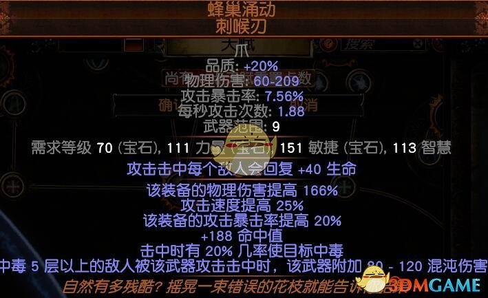 我的选择是使用采用毒化辅助的手套,算上毒捷自带20%,完全够用了