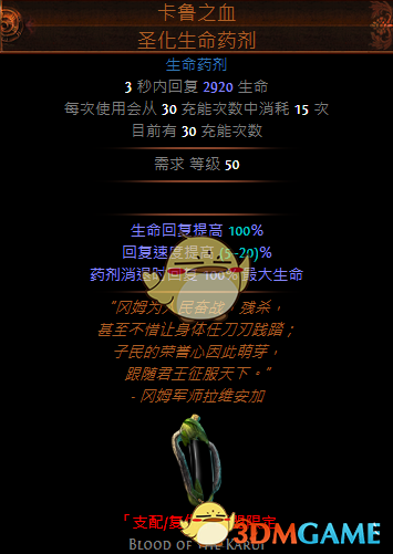 瞬回药:【卡鲁之血,圣化生命药剂】(价格小贵,但是一口满血值得带上一瓶)