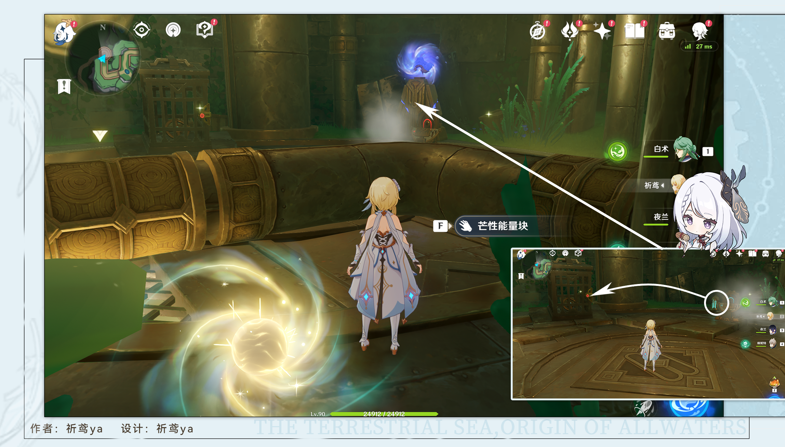 (3)最后来到底层,使用芒元素攻击机关盒,将储能装置放到牢笼旁,获得手轮