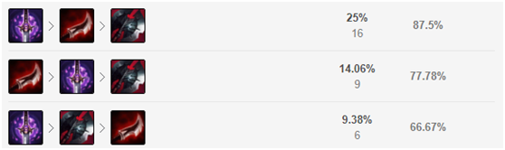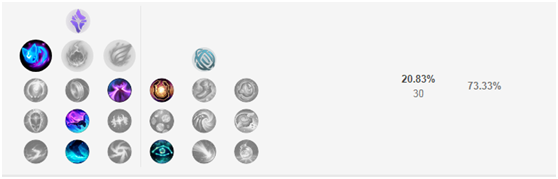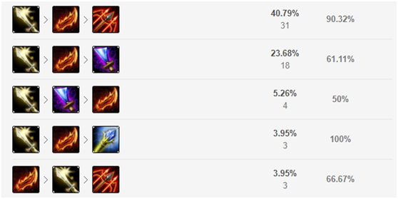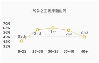 这个胜率随时间变化的折线图跟天使很像,强势期都在25到40分钟之间,通过这两名英雄我们也能够看出8.19是更加偏向于前中期的版本。而且选出艾翁那你一定就是双核或者是三核的大家阵容,如果拖到后期不能赢的话,那么翻盘还是很难的。