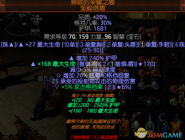 2.护盾没有绑定,优先师眼是这东西属性不错,也便宜,可以自己拿巨型塔盾底子用忌惮精华点,也可以选元素盾坚毅之食 坚毅塔盾