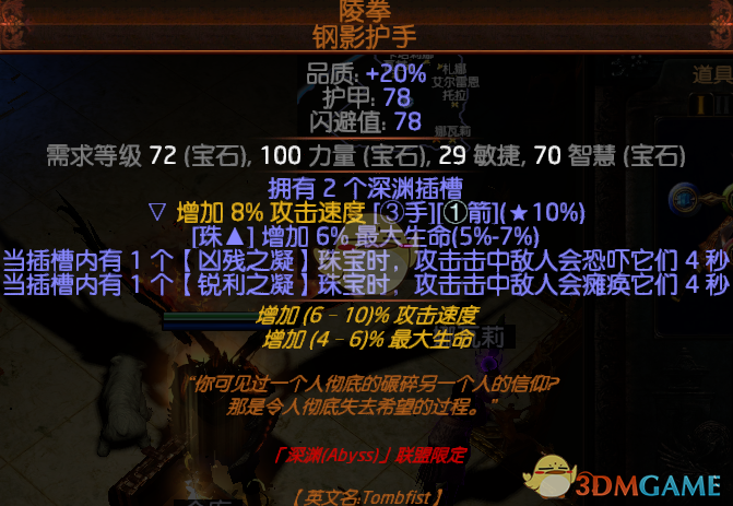 3.护手绑定双洞深渊手,在珠宝支持下,可以提供高额的血量及点伤
