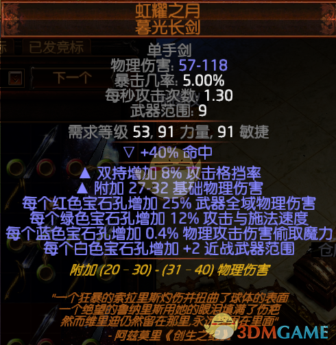 1.前期双持开荒,多找物理和攻速高的命中底子剑,可以找颗击中回蓝珠宝,到等级可以换战锤+暮光长剑(洗3绿孔),基本可以用到90级