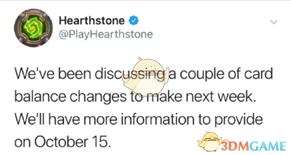 我们已经讨论了几张下周需要平衡的卡牌。我们会在10月15日为大家提供更多的有关平衡补丁的消息。