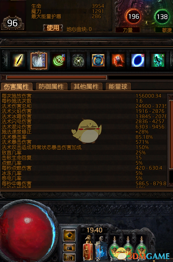 伤害测试结果:20级20品诱饵图腾+召唤生物抗性,奥尔盾冲直接没了QAQ