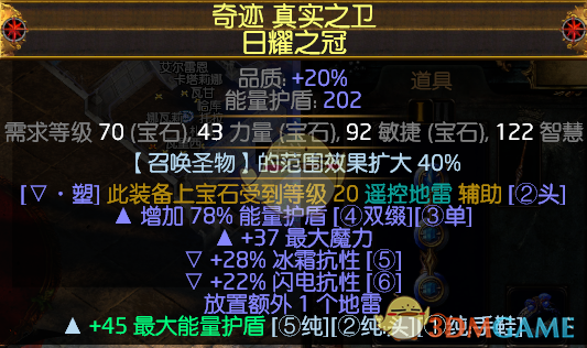 最好有额外一个地雷,可以提升15%左右伤害,能量护盾200合格,国服价格1E-2E