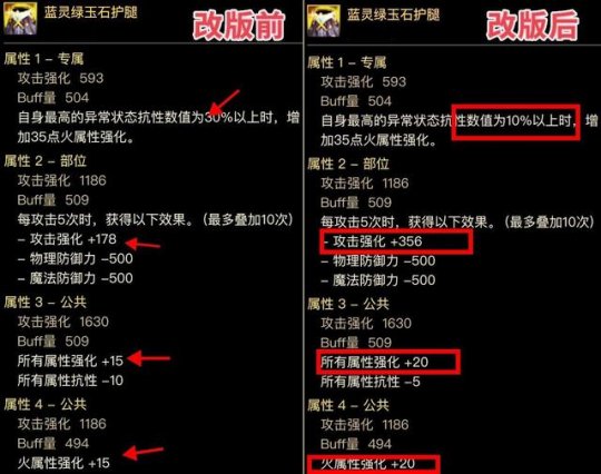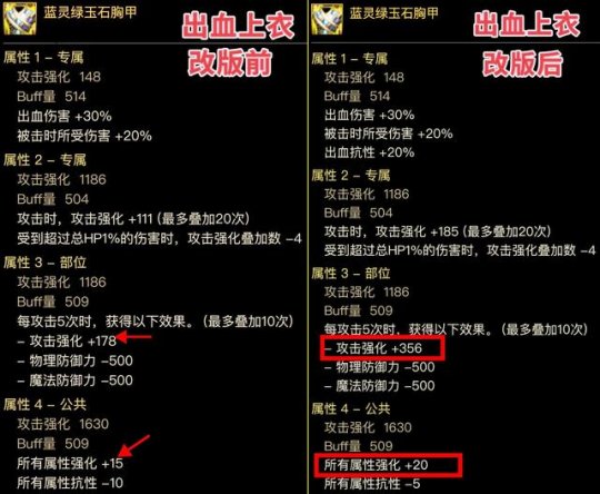 专属词条“自身异抗超过30%,属强增加35”,改版为“异抗10%增加35属强”,可以无脑触发了,直伤流可构建【全15、单15、单35、小攻强】的完美组合,改版后可完美。