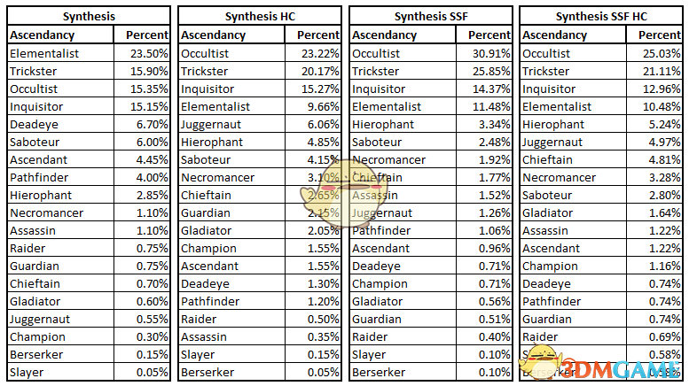普通赛季最多是元素 冬球占38% 烙印占31% BV3%,欺诈第二Soulrend21% pine lre9% ED7% 第三是秘术 漩涡11%Soulrend11% 霜爆加瓦尔霜暴占14%
