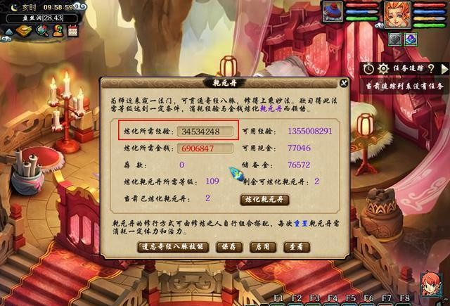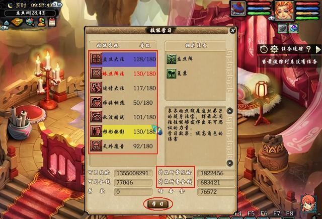 1. 点技能(师门技能、辅助技能、修、乾元丹)角色能力提升类,消耗经验的同时需要大量梦幻币支持