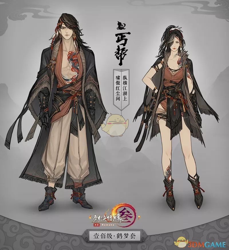 丐帮“鹤梦”套,继承了掌门的经典衣着风格,大气十足。服装整体宽松豪放,配套外褂、坎肩无风自动,以门派特色的小玩意加以装饰,印身龙纹栩栩如生,将君山子弟的豪迈狂狷进行完美呈现。