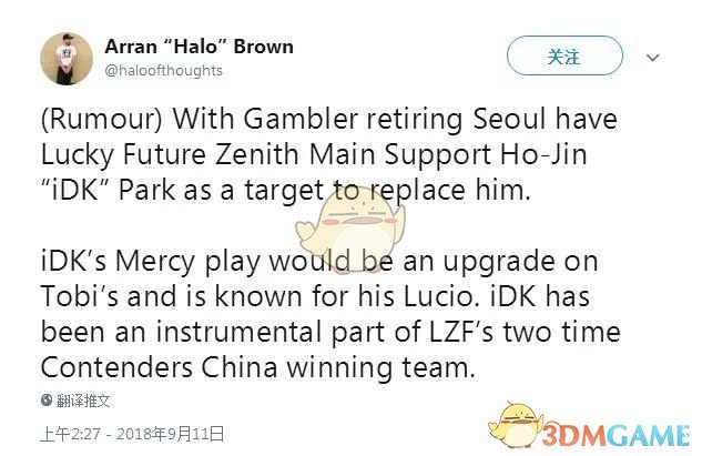 2018年8月31日,首尔王朝队辅助选手Heo“Gambler”Jin-woo宣布退役并转型为主播。