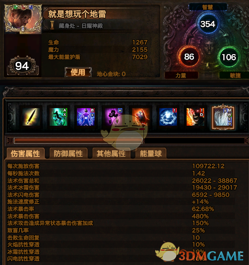 人物面板:是带了集中的,防御主要是三抗凑一样,带着混沌魔像。