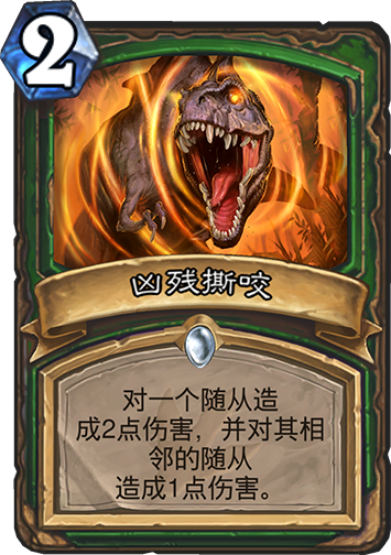 这张aoe在对付铺场快攻卡组中很关键,基本上能解决前期的大部分生物,如果配合上炎术士的话,那么就是一个超强的aoe了,就算对面身材高低不齐,基本上都能一套组合搞定。
