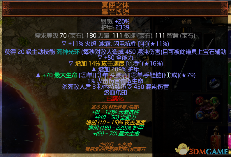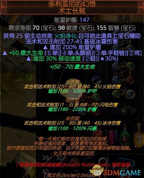 我是正好打到这个鞋,自带25级火焰净化技能+5最大火抗