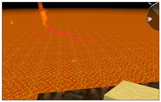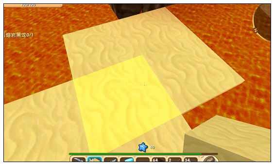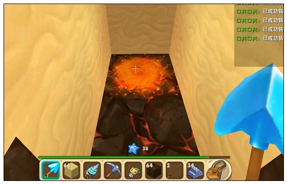 记住硫磺晶砂的位置,在周围填细沙块的范围要大一些,方便挖取石头,同时避免掉落到岩浆中烧死。