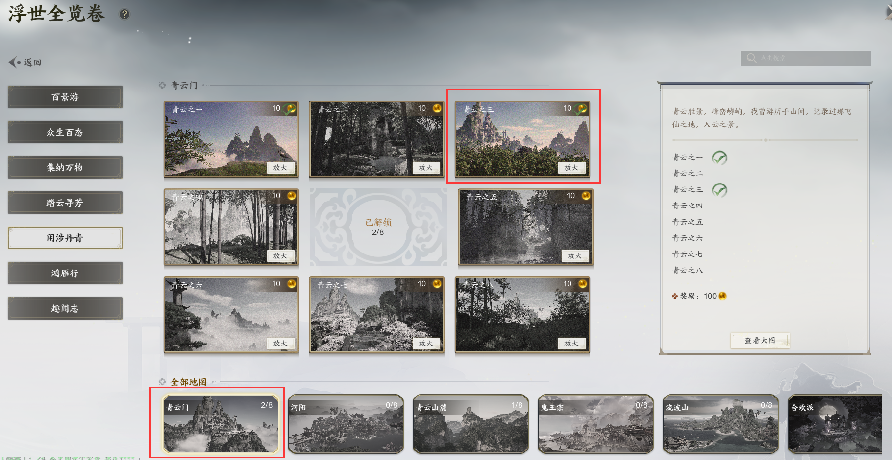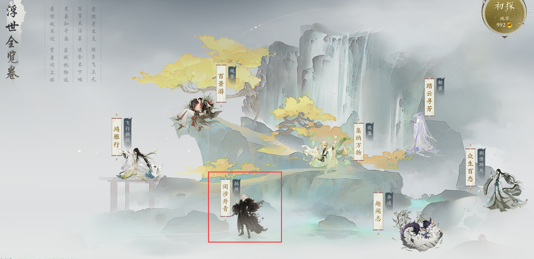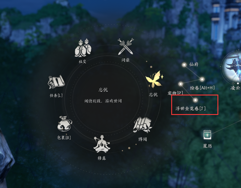 我们在游戏内ESC,在忘忧选项里选择浮世全览卷,或者直接快捷键J进入。