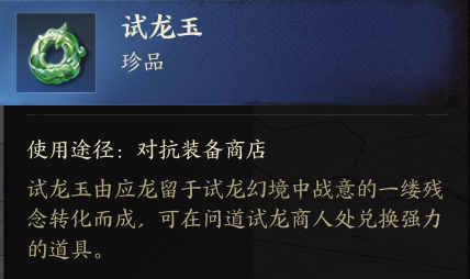 通过问道试龙获得,用于在对抗装备商店兑换物品。