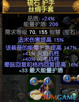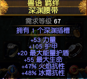 腰带,手套,头盔是用来补抗的,尽量选择高抗高ES的,另外这个BD会比较缺力量和敏捷,最好是能够在项链,腰带和戒指上找一点
